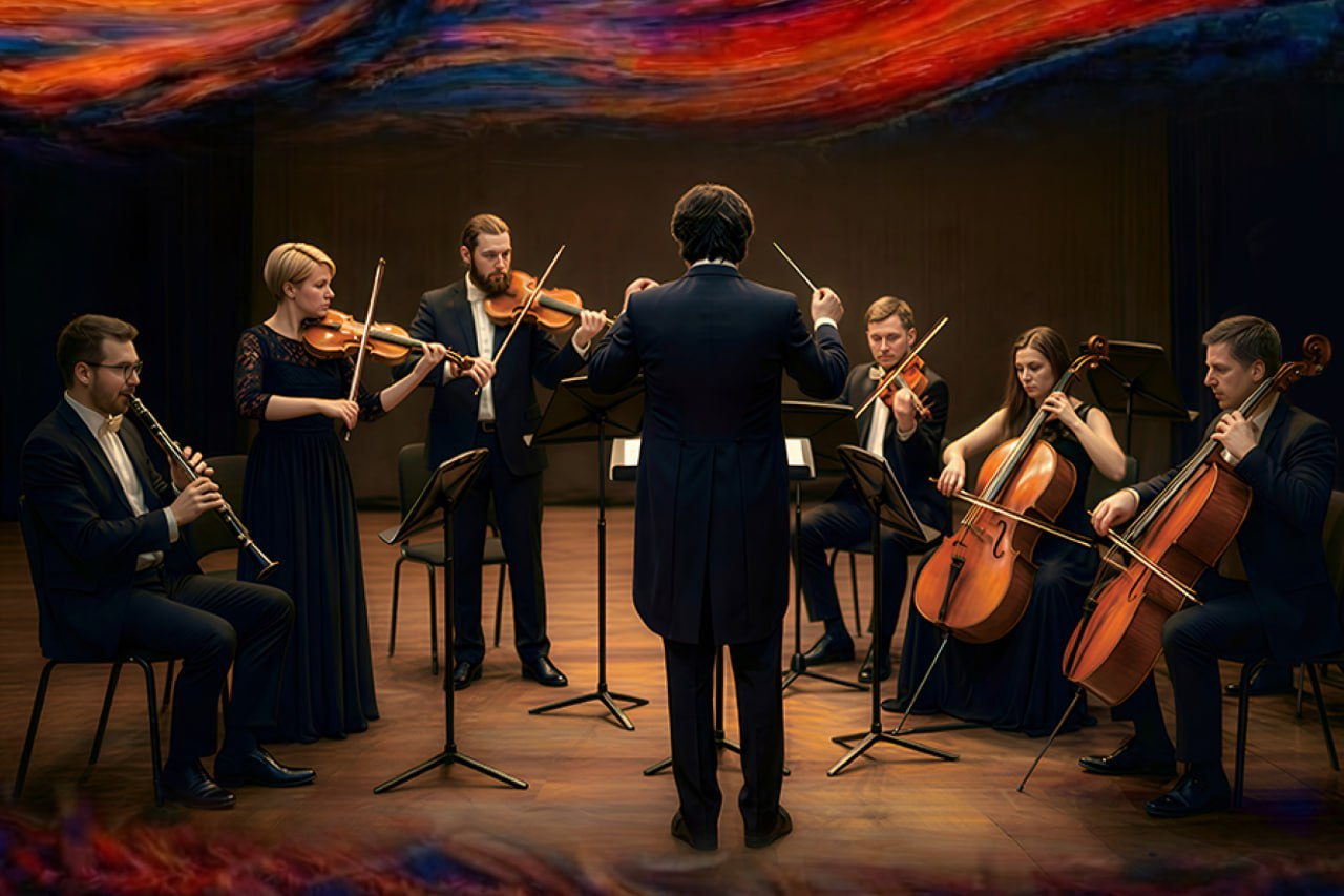 Звучание оркестра и визуальные образы соединяются в единую художественную форму. Музыка, свет и визуальная драматургия создают целостное ощущение, существующее вне времени, эпохи и жанра.