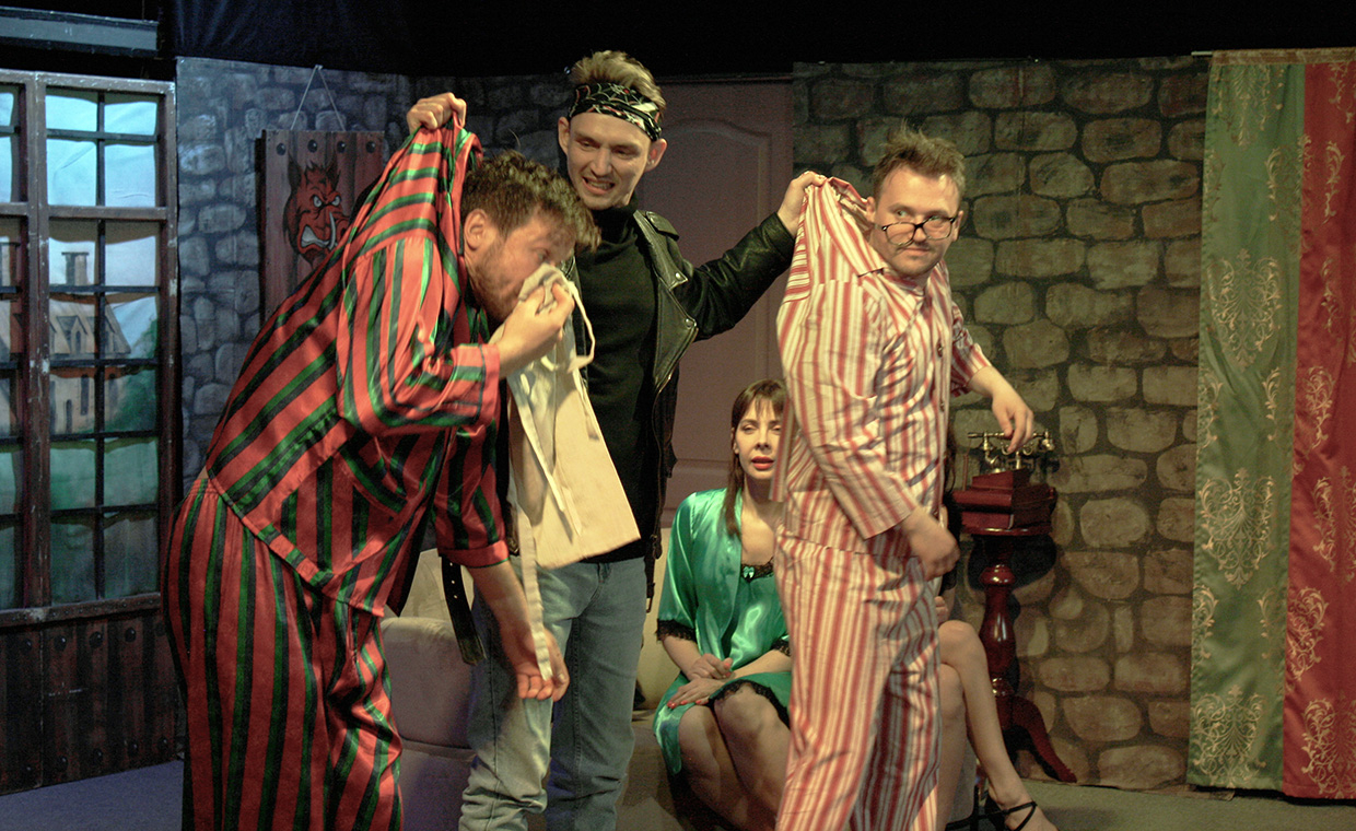 Это легкая комедия, в которой царит веселая неразбериха. Одна анекдотичная ситуация сменяется другой. Здесь так много любовников, что сами герои уже перестают понимать, кто чей любовник. Все настолько сбиты с толку своими же уловками, что все происходящее принимает форму веселого абсурда. Липкая паутина лжи уже совсем было опутала незадачливый «семейный квартет», как вдруг… Как вдруг происходит нечто настолько непредвиденное, что приводит наших героев к совершенно неожиданному финалу.