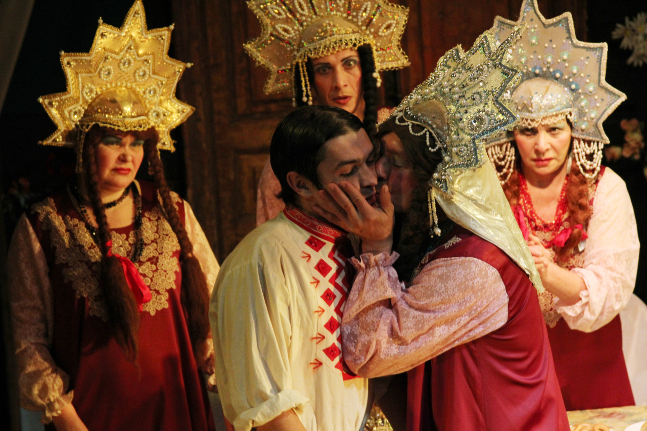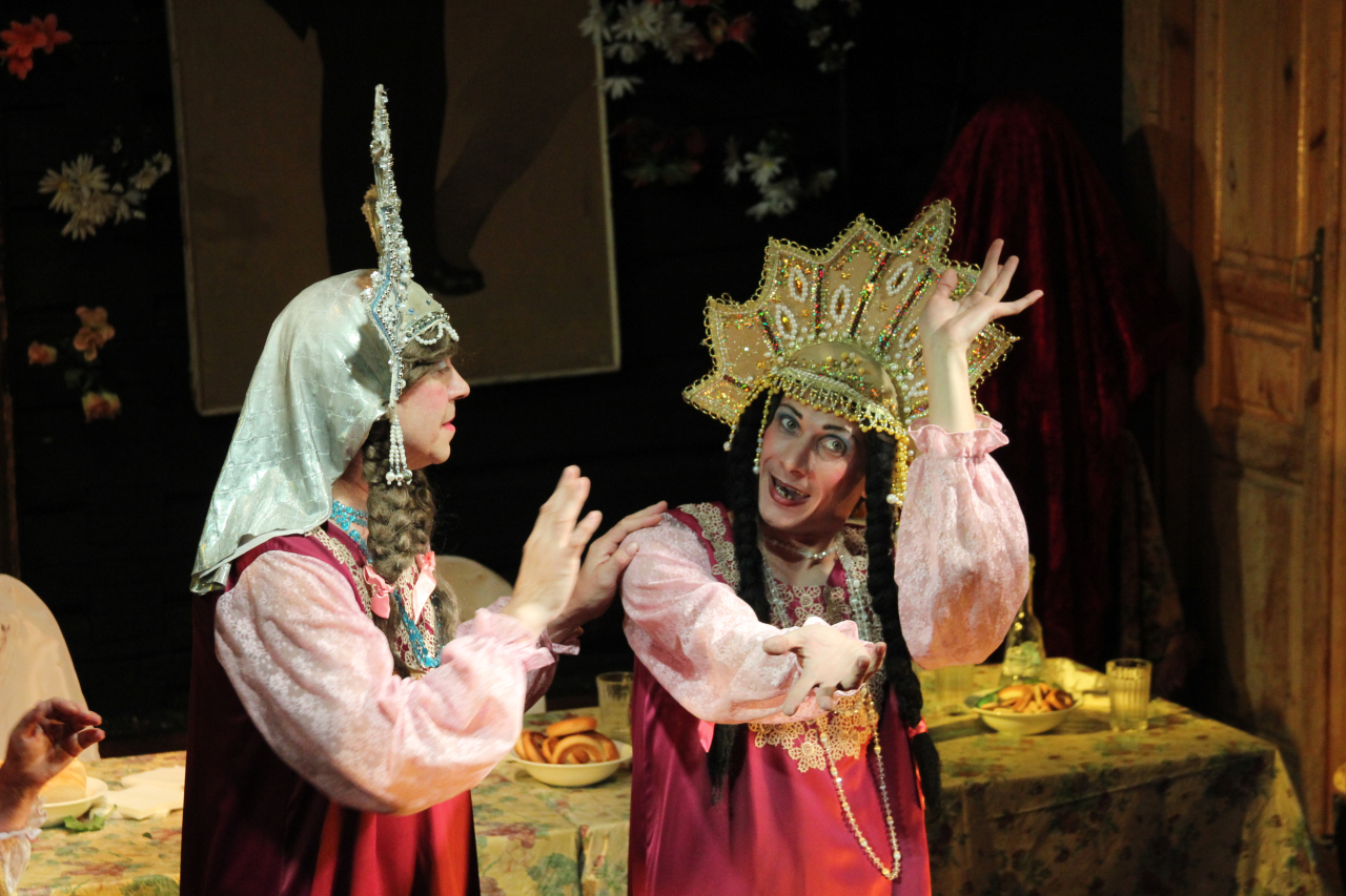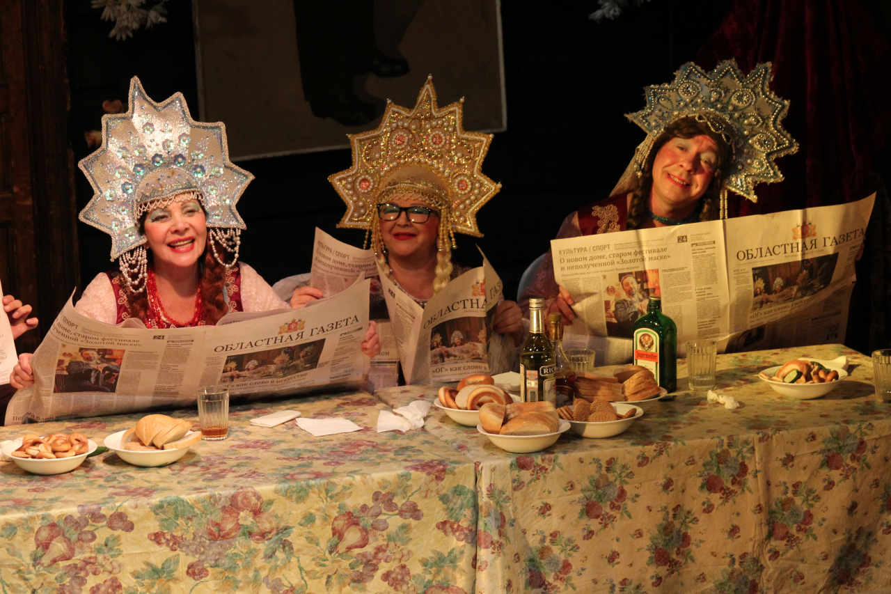 Спектакль начинается с веселого застолья.