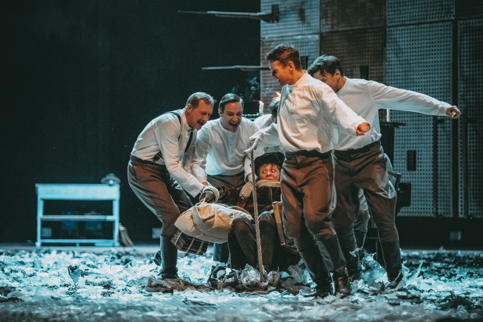 Без малого век, начиная с легендарной постановки Московского художественного театра (1926), мы знакомы с историей семьи Турбиных, дом которых, со знаменитыми кремовыми шторами и зеленым абажуром, казалось бы, навсегда останется театральным символом спокойствия и уюта. Но героям нашего спектакля не ведом спасительный покой, им негде спрятаться от молоха истории. Режиссер Александр Баргман (Санкт-Петербург) и художник Владимир Кравцев создают на сцене непривычную знатокам пьесы атмосферу «стального» мира, в буквальном смысле ощетинившегося штыками, способного в любой момент безжалостно раздавить саму надежду на любовь и счастье...