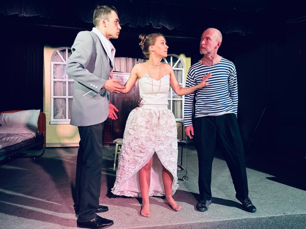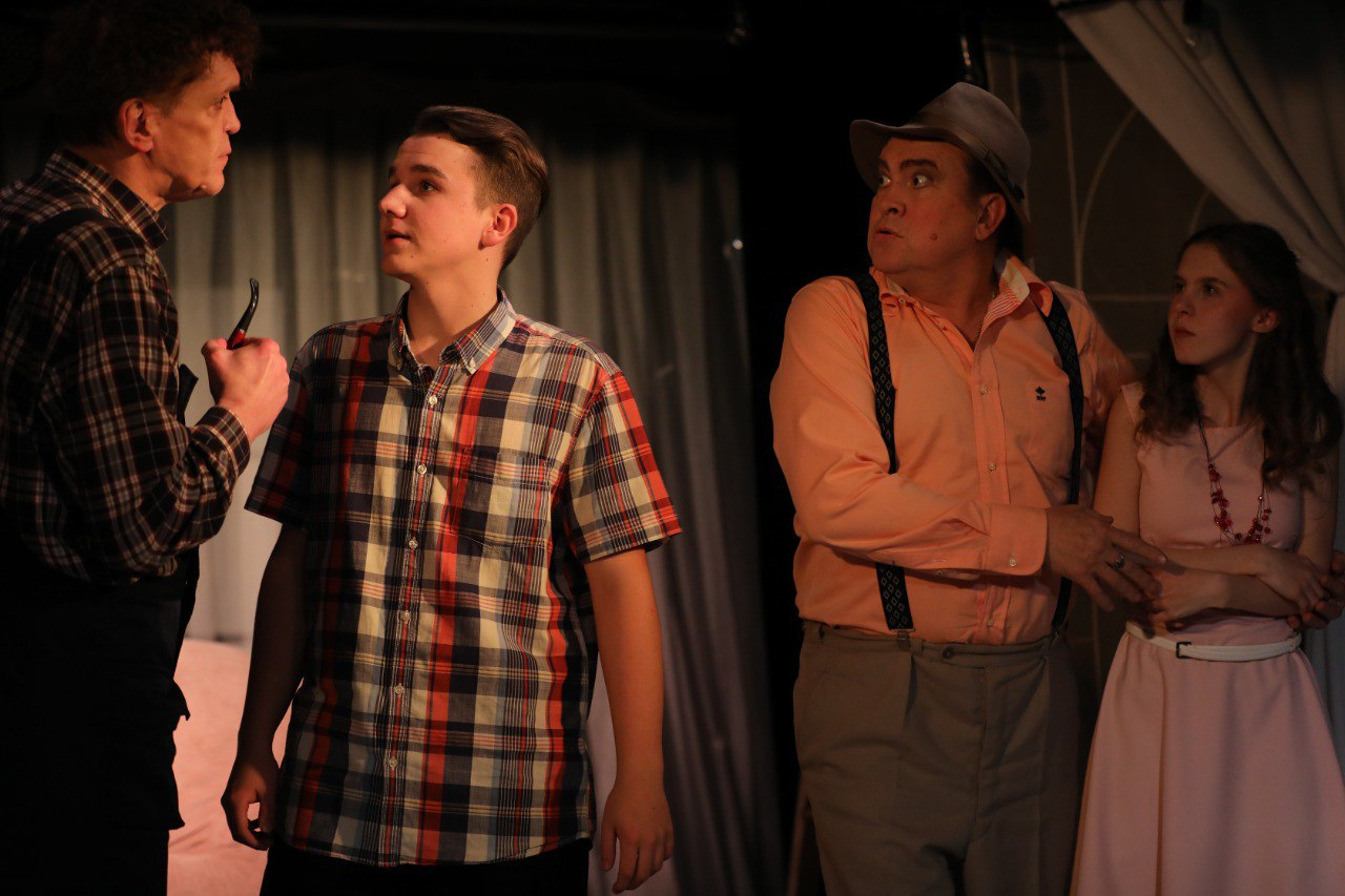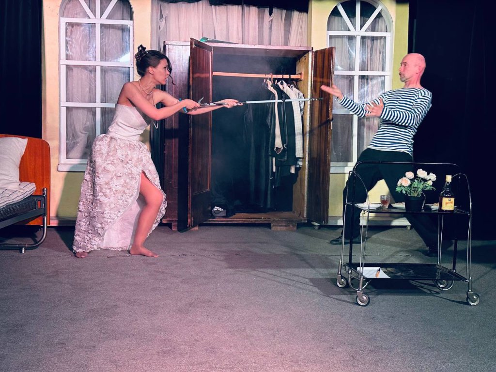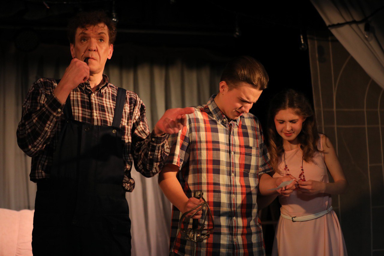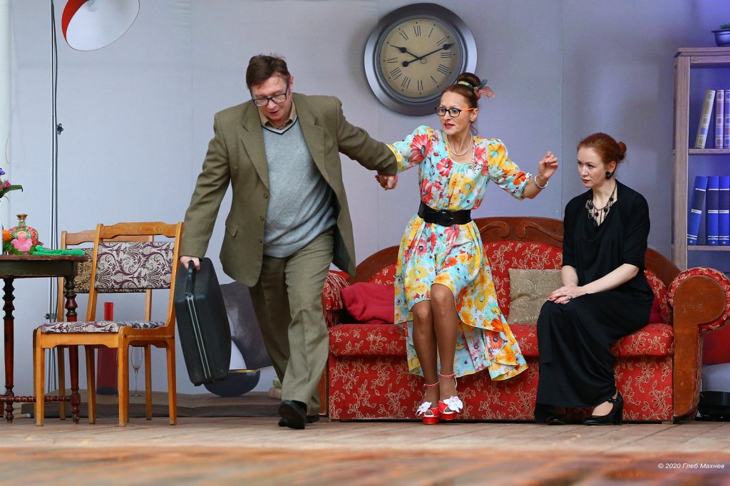 ТеатрУтром, съев завтрак, муж сообщил жене, что уходит от неё и уезжает немедленно в большой город. Весть об этом разносится по городку мгновенно. И вот на её пороге два кавалера...