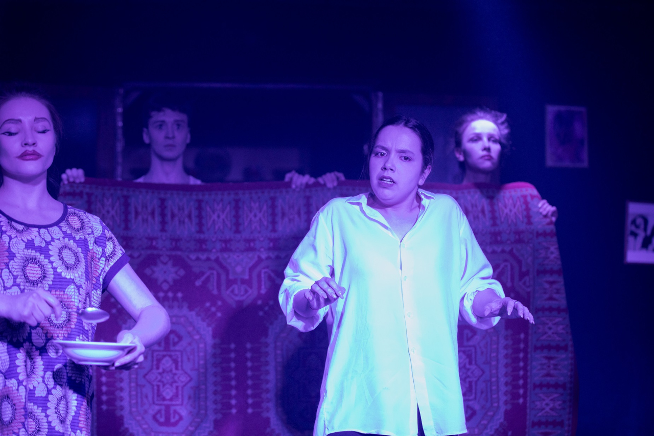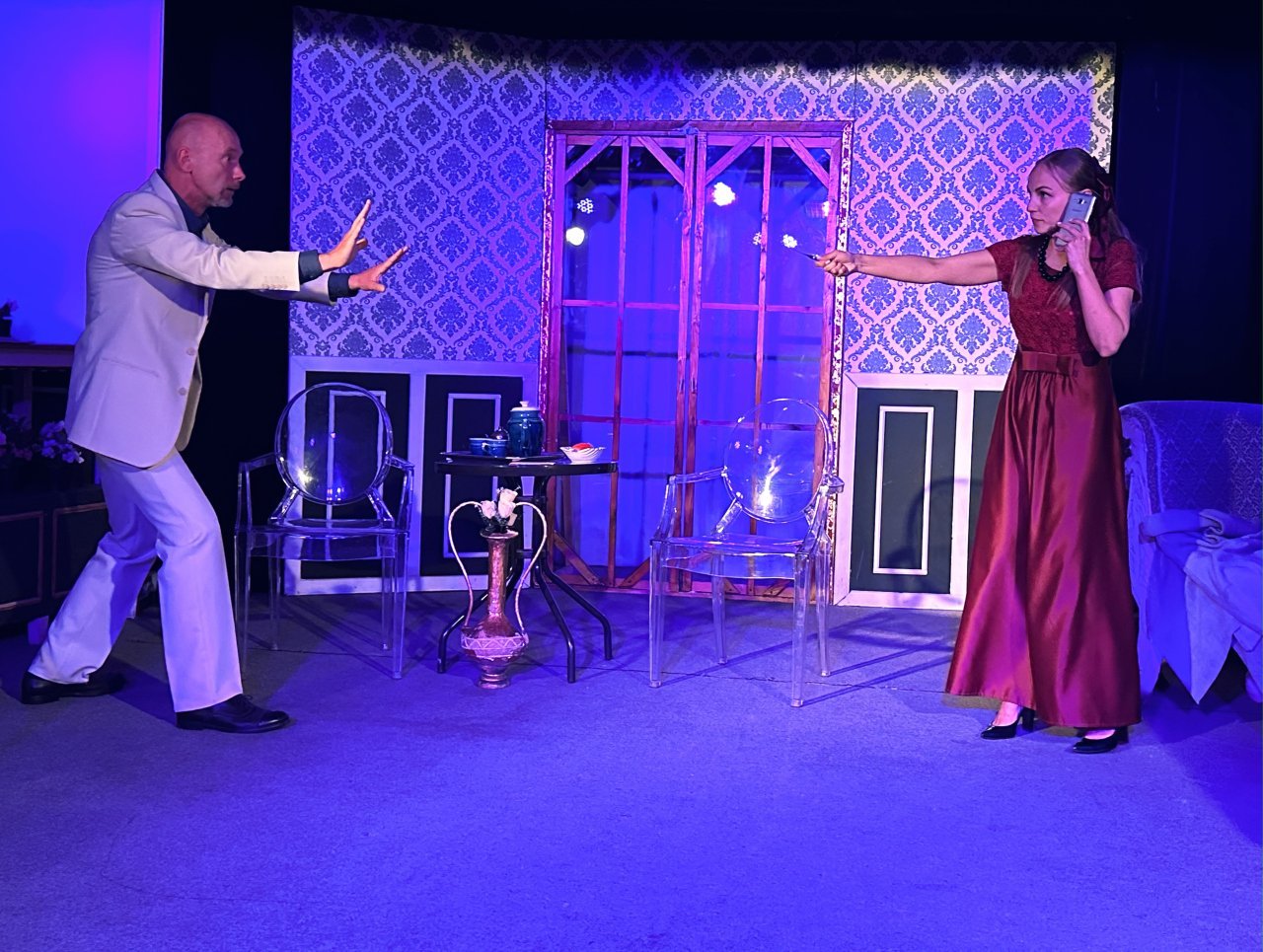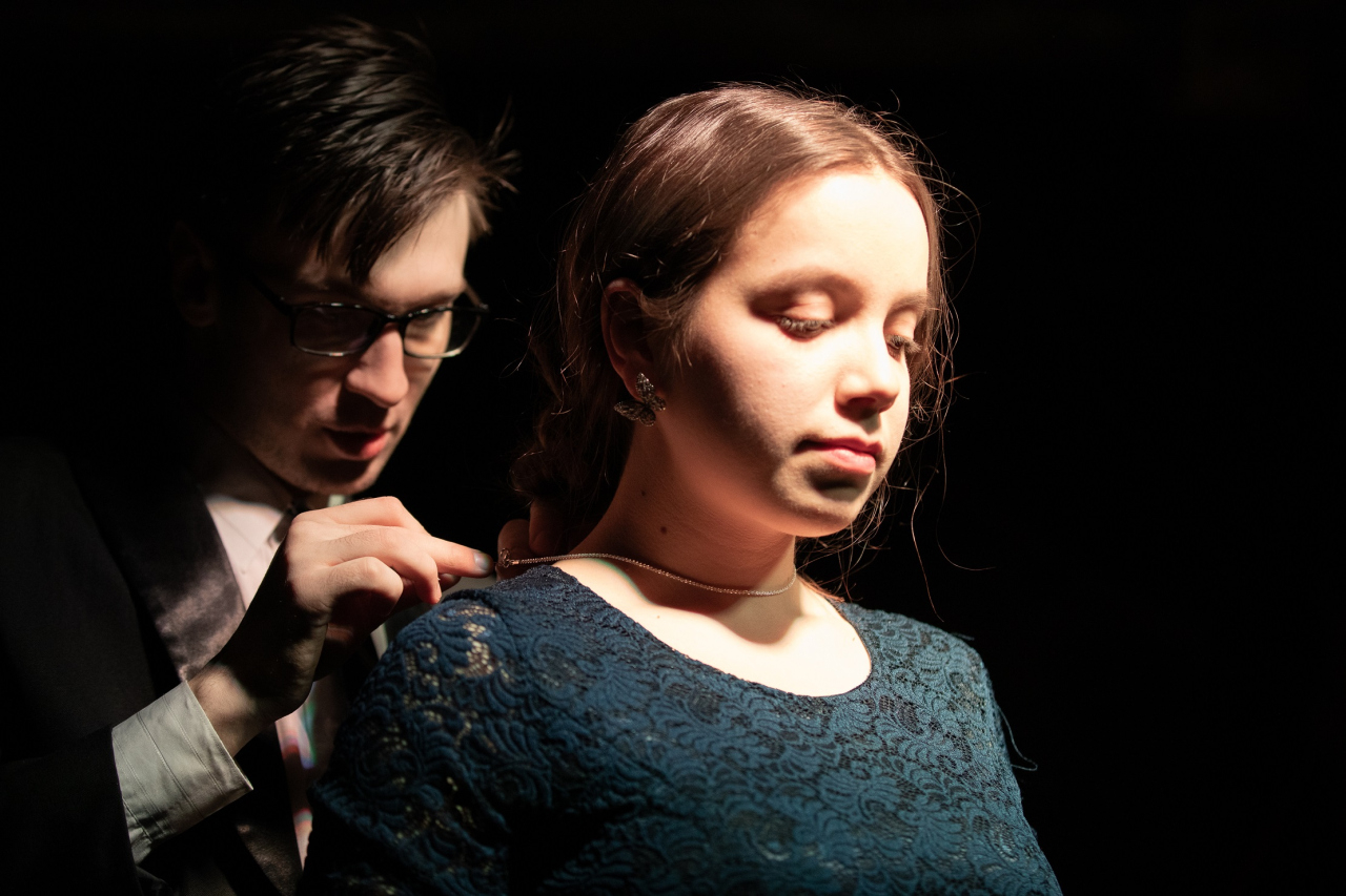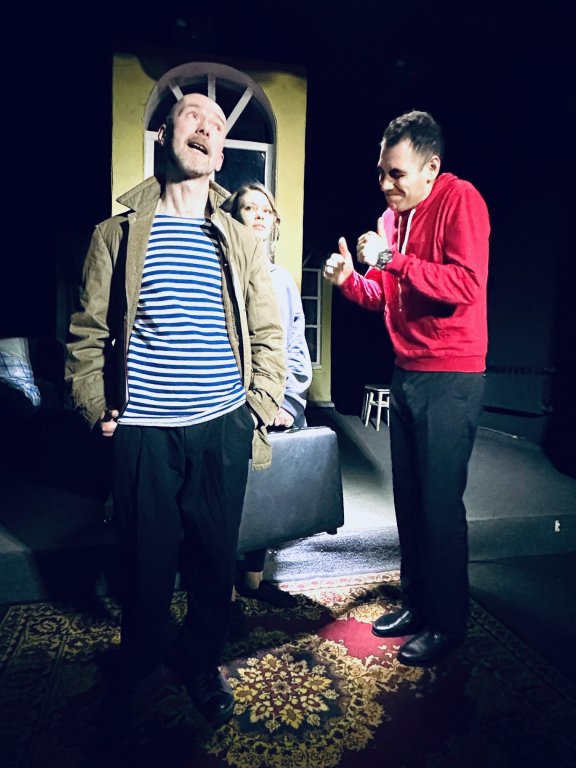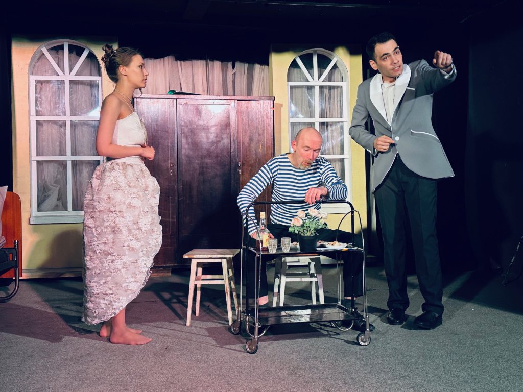 ТеатрУтром, съев завтрак, муж сообщил жене, что уходит от неё и уезжает немедленно в большой город. Весть об этом разносится по городку мгновенно. И вот на её пороге два кавалера...