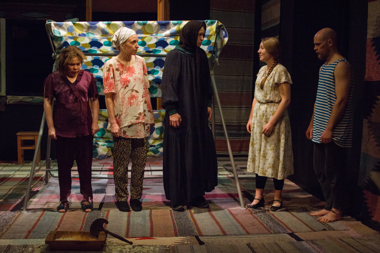 ТеатрПеред нами шесть разновозрастных персонажей: Тамара Усик – 45 лет, её сестра Людмила – 45 лет, муж Людмилы Валя – 45 лет, мать Вали Нина – 80 лет, Хромоножка – 35 лет и её сын Микола – 15 лет.