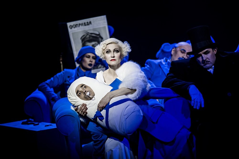 Диденко вступает в диалог с фильмом Григория Александрова, с одним из самых мощных русских киномифов. Режиссер воздает должное оригиналу в первую очередь в том, что касается жанра. Цирковой кинофеерии Александрова он отвечает театральной феерией. «Цирк» в Театре Наций роскошно зрелищен благодаря сценографии и костюмам, видеомэппингу и видеоонлайнам, изобретательным постановочным эффектам.