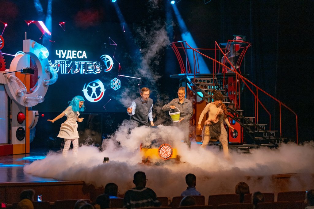 Яркое, развлекательно-научное шоу с интерактивными играми и удивительными экспериментами, в которых могут участвовать зрители! Химия и физика, география и биология, музыка и литература — станут значительно понятнее и намного интереснее! Полтора часа настоящего наслаждения и веселья, помноженного на новый опыт, знания и умения — это шоу, которое раздвигает школьные рамки и развивает любовь к науке! ШОУ ЧУДЕСА ГАЛИЛЕО!