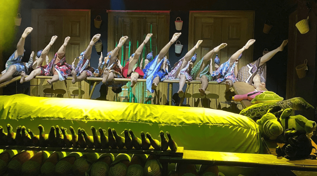 Всё в пьесе «Ночь игуаны» на полутонах, всё в подтексте, всё закрыто автором разными «рюшечками», узорчиками, цветочками и сложно понять, что тут люди говорят слова, чтобы спрятать мысли и чувства, что их раздирает от тоски, и что все ищут своё счастье. Все боятся друг друга, все боятся сделать шаг навстречу тому, кто понравился.