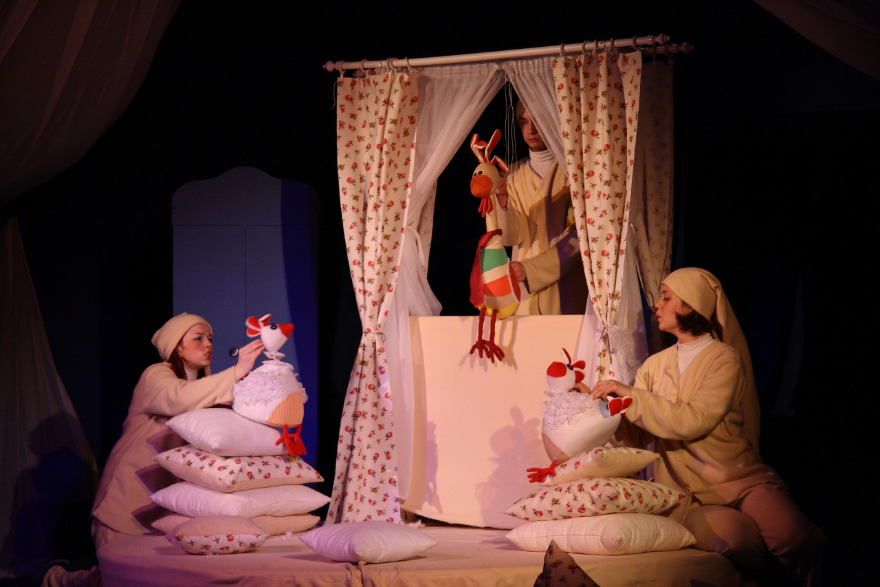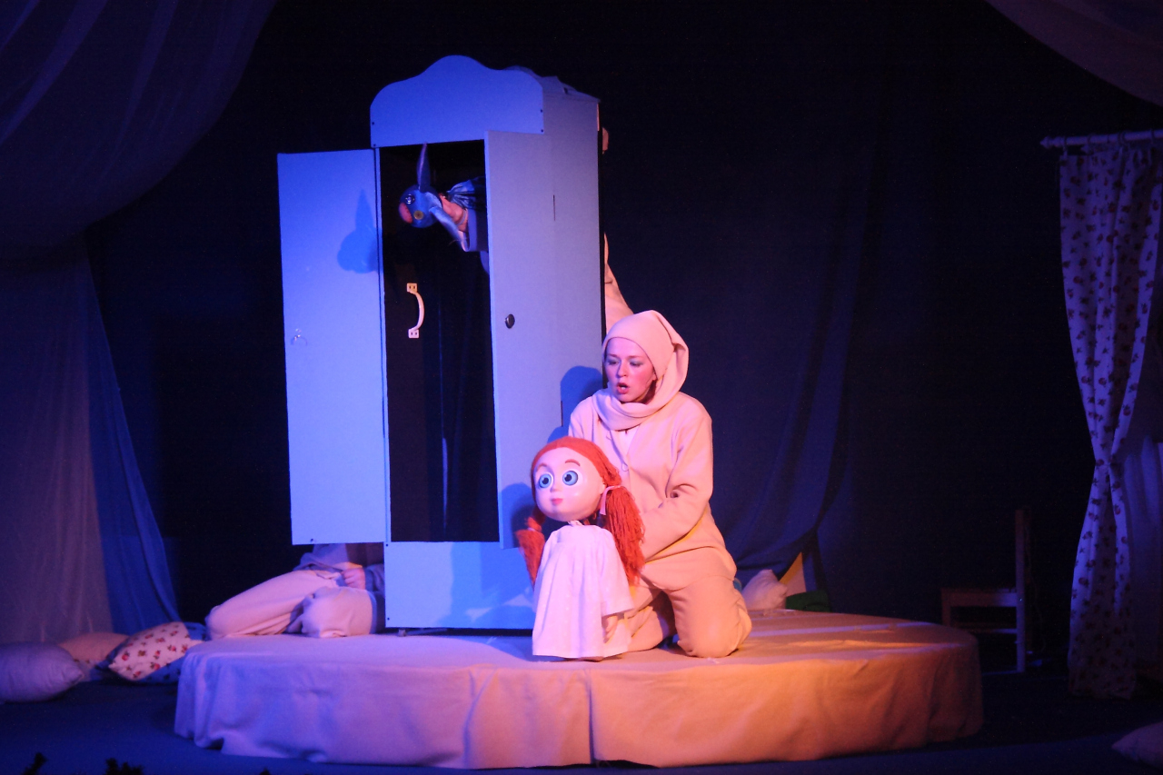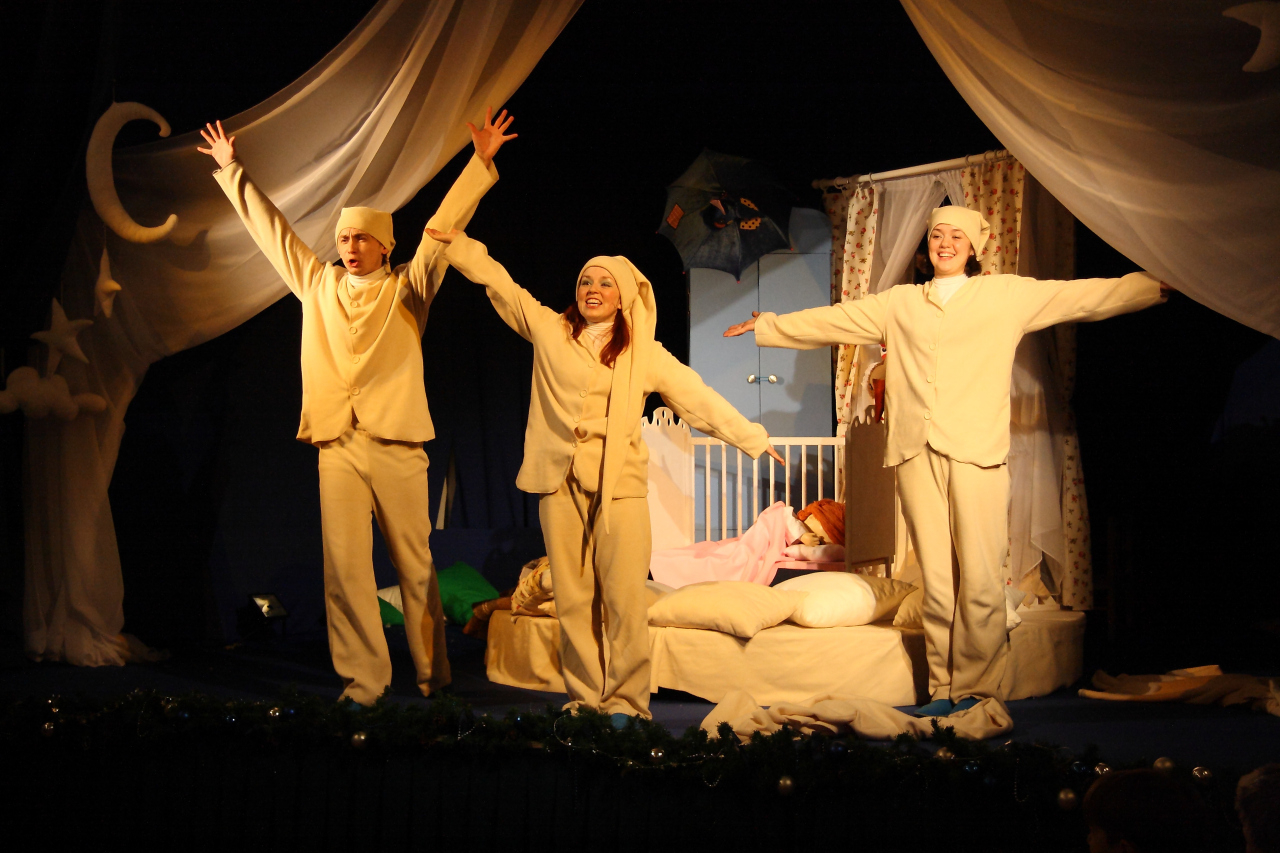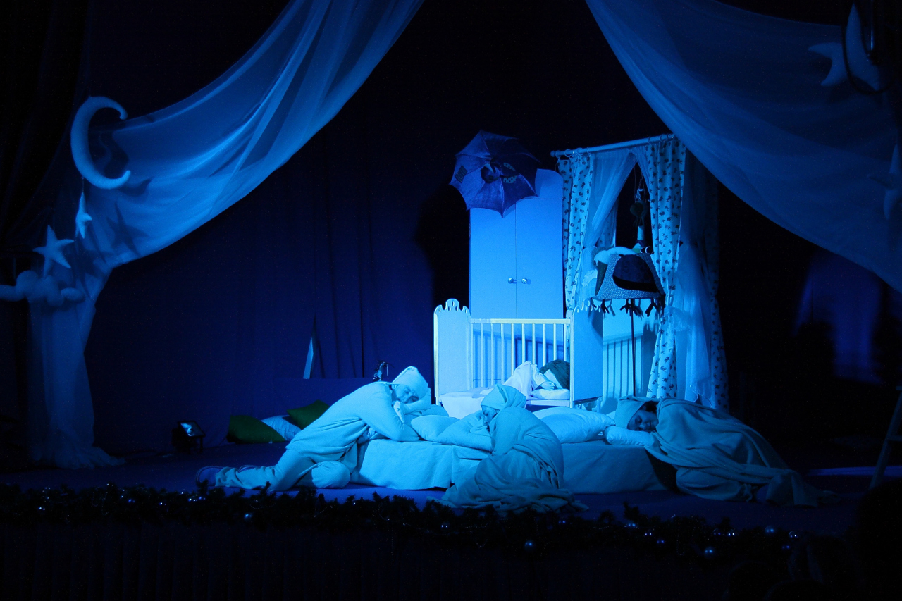 Театр кукол «Мир на ладошке» представляет историю о маленькой девочке Маше, которая не хотела ложиться спать. Она поссорилась с подушкой и отправилась в сад на поиски нового ночлега. Поспала в конуре у собачки, у курочек на насесте и даже на чердаке летучей мыши. И в конце концов поняла, что лучше своей кроватки нет ничего на свете.
