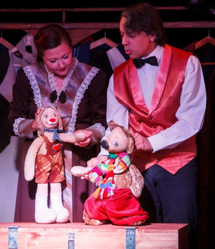 ДетскиеНа волшебной сцене Максим Холла – среди старинных чемоданов и вычурных костюмов, среди шляпных коробок и стопок книг – артисты расскажут историю про дружбу Медвежонка и Зайца, про Клоуна и Бегемотика и про Пуговичную ведьму, которая хотела отнять у Зайчика его чудесное сердечко.