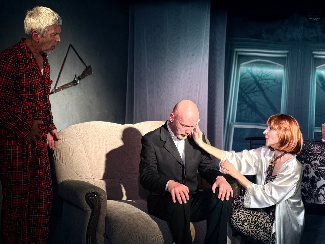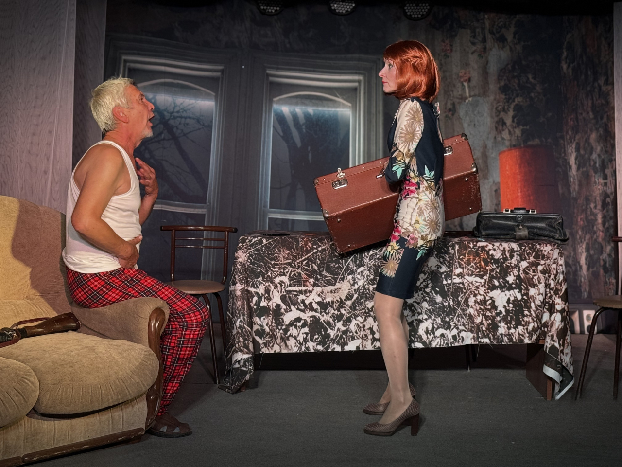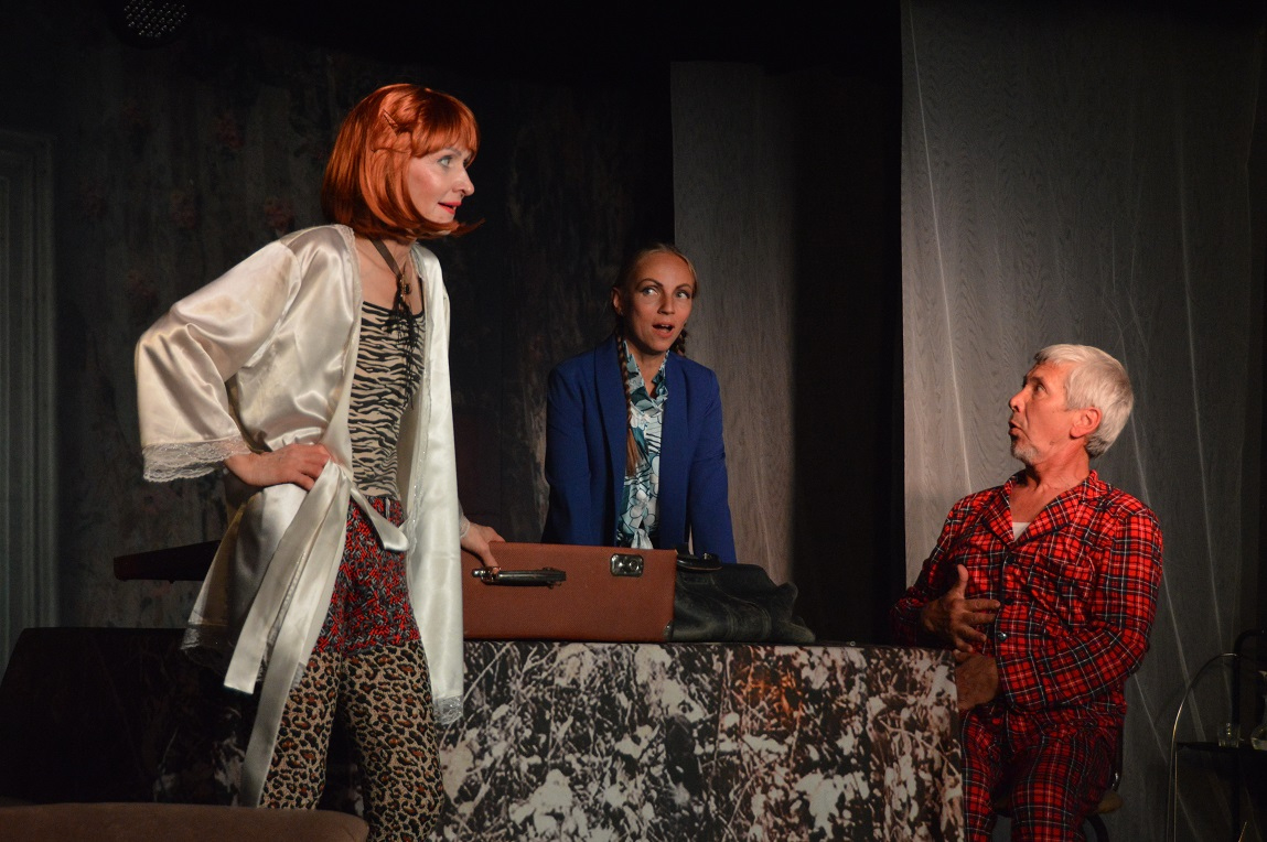 ТеатрУтром, съев завтрак, муж сообщил жене, что уходит от неё и уезжает немедленно в большой город. Весть об этом разносится по городку мгновенно. И вот на её пороге два кавалера...